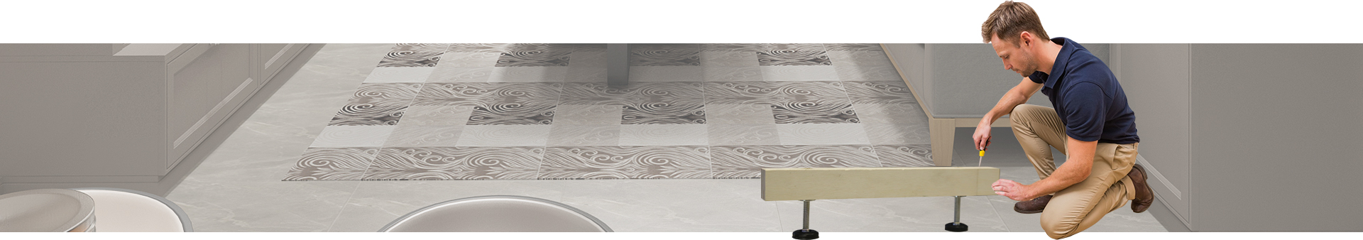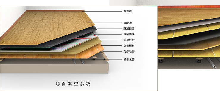 海驪裝配式地面架空系統(tǒng),摒棄傳統(tǒng)濕法施工工藝,打造全新地面架空系統(tǒng),施工快速,安全環(huán)保,聯(lián)合日本建材公司共同研發(fā)十一種型號(hào)支撐地腳,具有簡易放線、便于調(diào)平、堅(jiān)固耐用、舒適防震及滿足多種空間需求的特點(diǎn)。采用多種型號(hào)支架組合,結(jié)合日本F4星級(jí)環(huán)保薄貼膠固定,可解決架空地板空洞以及平穩(wěn)性差的問題。上層引進(jìn)日標(biāo)仿石材地板及EB地板,美觀性強(qiáng)、舒適度高、簡易拼裝