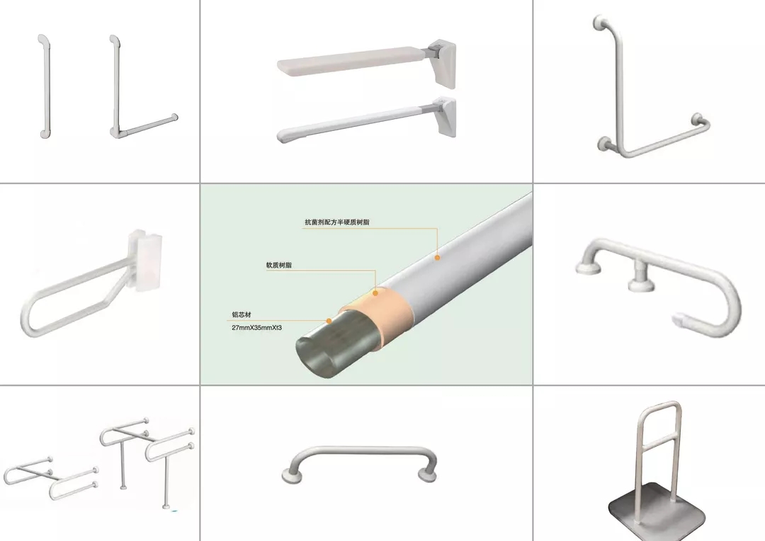 以住建用品和設(shè)備分類下的扶手為例,根據(jù)使用環(huán)境,分為洗面器用、馬桶用、輔助站立用、護板用、走廊用等規(guī)格。扶手多采用軟硬質(zhì)樹脂材料覆蓋而成,觸感舒適,一年四季均保持干燥溫和的手感。同時,全部器具進行大腸桿菌和黃金色葡萄球菌的抗菌試驗,達到半永久性抗菌效果。